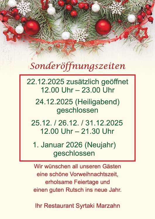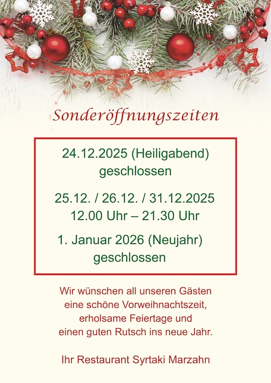 Wir würden uns freuen Sie recht bald in unserem Restaurant Syrtaki in Berlin Marzahn begrüßen zu dürfen.